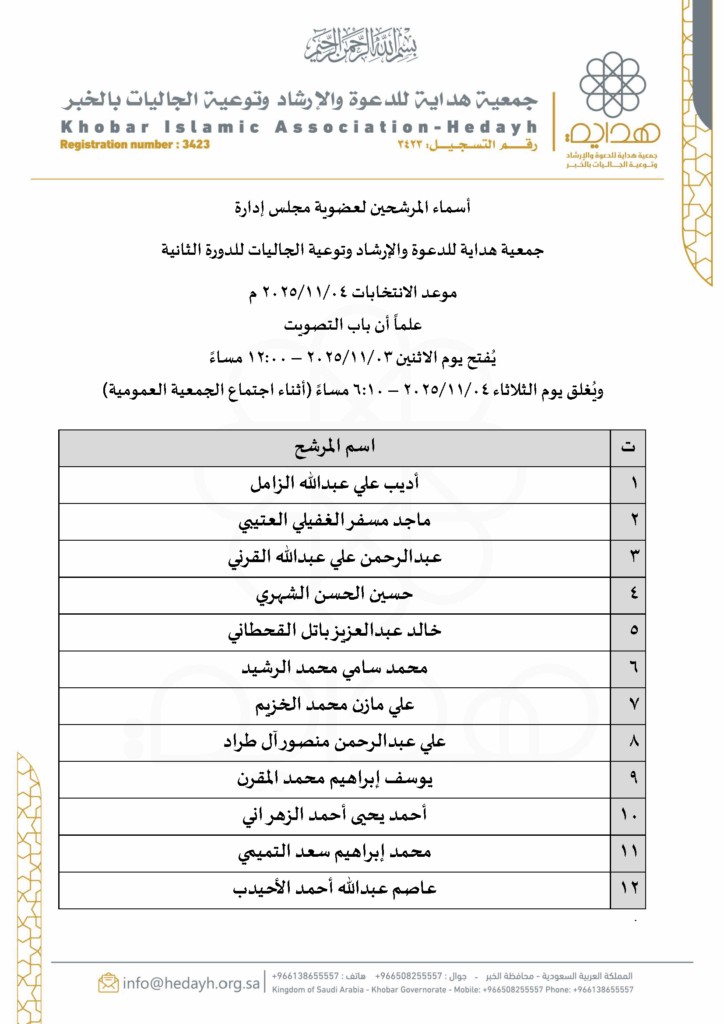 أسماء المرشحين لعضوية مجلس الإدارة للدورة الثانية
